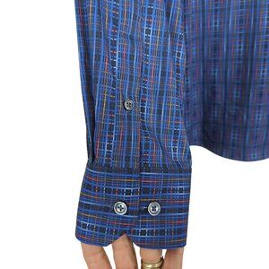 Crafted for a polished appearance, this Bugatchi shirt features a refined blue plaid design, providing a classy yet versatile choice for varied menswear needs.