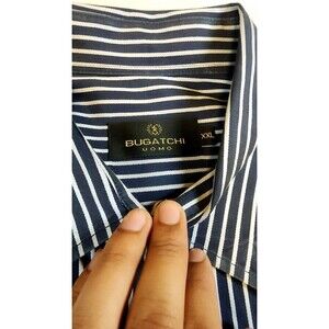Bugatchi Mens Button Up Shirt 2XL Striped Black Luxury Modern Preppy Minimalist