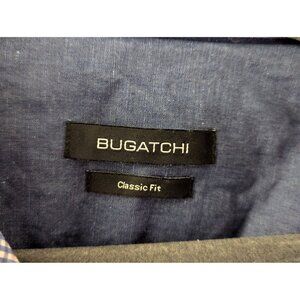 Bugatchi Mens Classic Fit Blue Gingham Shirt With Floral Pattern 100% Cotton Siz