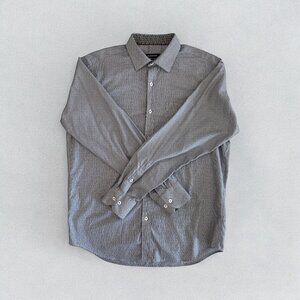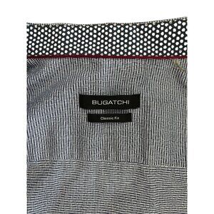 Bugatchi Mens Classic Fit Cotton Button Up Dress Shirt Blue White Pattern M