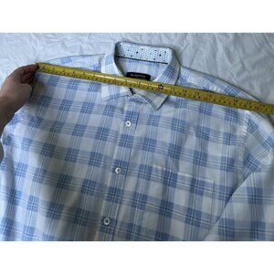 Bugatchi Men’s Classic Fit Plaid Button Up Shirt Blue Long Sleeves XL