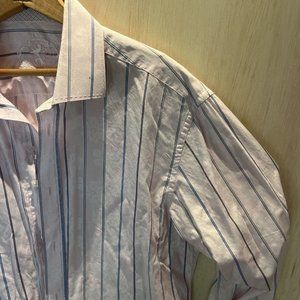 Bugatchi Men's Long Sleeve Pink Stripe Button Up Shirt Shaped Fit large?