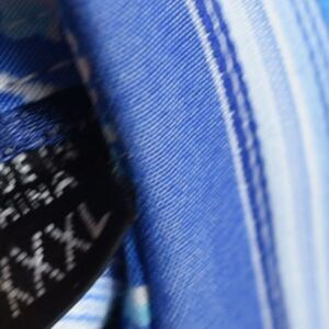Beautiful stripe pattern in monochromatic blues with paisley flip cuff details