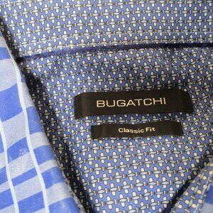 For sale is this Bugatchi Men's Size - L Classic Fit Blue Geometric Long Sleeve Button-Up