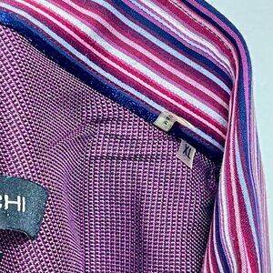 Bugatchi Mens Striped Button-Up Shirt In Shaped Fit Purple/Red XL