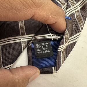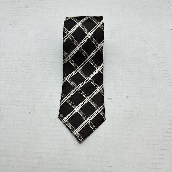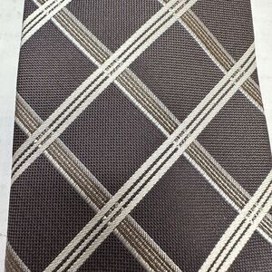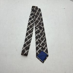 Bugatchi Men's Tie, 100% Silk Italy - Brown Grey Silver Geometric Stripe in used conditions with plenty of life left in it with no stains. Please see pictures for better condition details.