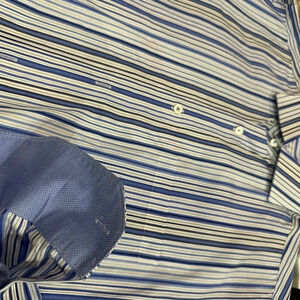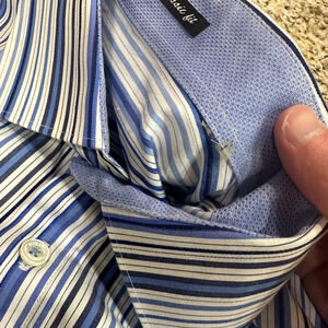 Bugatchi Men’s XL LS Dress Classic Fit Shirt - 100% cotton Blue/White Stripped