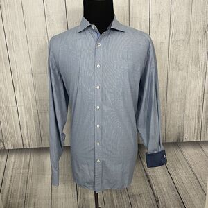 - Bugatchi Men's XXL Blue Contrast Cuff Cotton Long Sleeve Button-Front Shirt