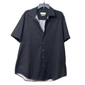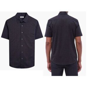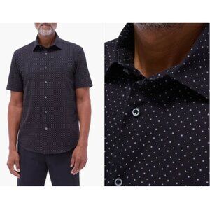 Bugatchi Miles OoohCotton® Neat Short Sleeve Button-Up Shirt, Black, XL