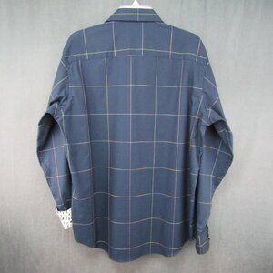 Bugatchi Navy Blue Rainbow Check Button Up Shirt Sz M Classic Fit Umbrella Cuff