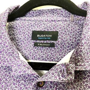 Bugatchi Oooh Cotton Purple Ditsy Micro Floral Polo 8 way stretch Large