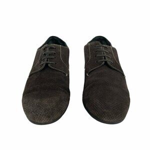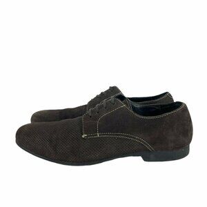 Bugatchi Oxford Shoes Men's Sz 10 Derby Wingtip Perf Lace up Suede Dark Brown