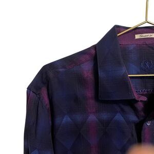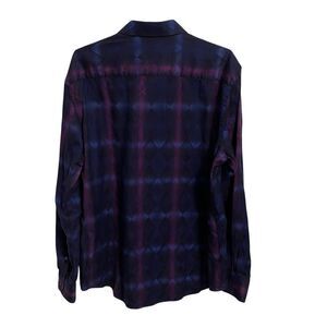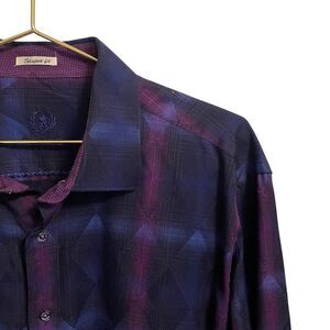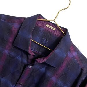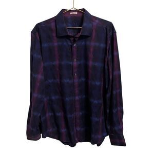 Bugatchi Purple Blue Plaid Shaped Fit Button Down Shirt Large