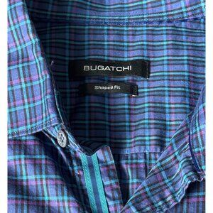 Bugatchi Shaped Fit Button Down Shirt Long Sleeve Blue Plaid Mens Sz Small