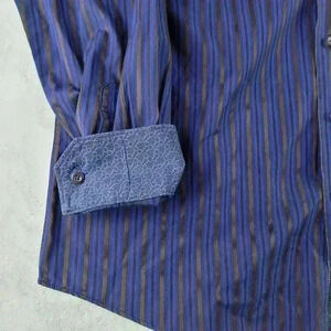 Bugatchi Shaped Fit Flip Cuff Button Up Shirt Men's Size XXL Purple Striped