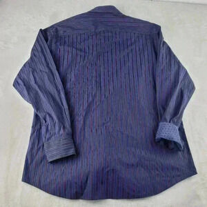 Bugatchi Shaped Fit Flip Cuff Button Up Shirt Men's Size XXL Purple Striped