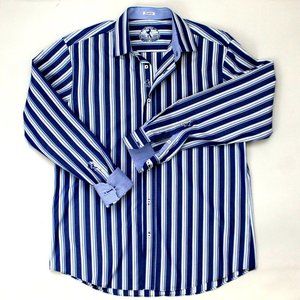 Bugatchi Shaped Fit Mens L 100% Cotton Long Sleeved Shirt Contrasting Cuffs