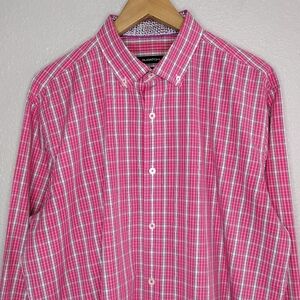 Bugatchi Shaped Fit men's plaid casual front button down shirt.