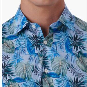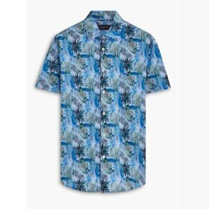 Bugatchi Shaped Fit Print Stretch Cotton Short Sleeve Button-Up Shirt Large NWT
