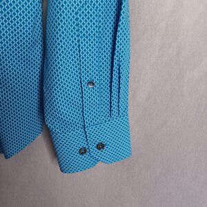 Bugatchi Shaped Fit Shirt Mens Medium Teal Blue Long Sleeve Button Down Luxury