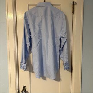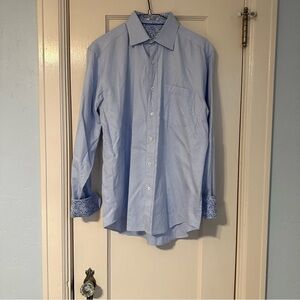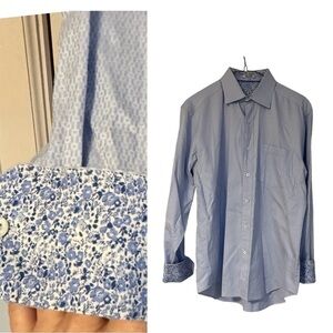 Bugatchi Shirt Flip Floral Cuffs Button Up Icy Blue Shaped Fit Cotton Size S