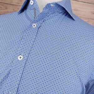 Bugatchi Shirt Mens 2XL Blue Geometric Shaped Fit Long Sleeve Button Up