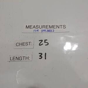 Actual Measurements (as noted on markerboard): Chest 25 in, Length 31 in