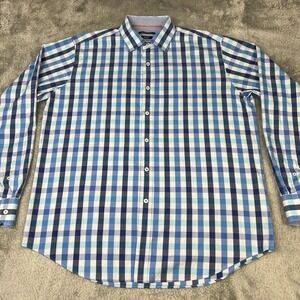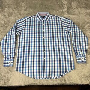 Bugatchi Shirt Mens Extra Large Blue Plaid Preppy Button