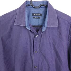 Crafted for the modern professional, this Bugatchi men's button-down shirt offers a seamless blend of comfort and style. Available in a striking purple, the shirt is designed with a regular fit that ensures ease of movement, making it an ideal choice for business casual settings or evening events. The 100% cotton fabric promises breathability and ease of care, being machine washable.The shirt features a classic collared neckline and long casual sleeves that complement a variety of looks, from workwear to cocktail attire. Its versatile all-seasons feature adds to its appeal, ensuring it's a staple piece for any wardrobe. Whether it's for a day at the office or a night out, this Bugatchi shirt is tailored to elevate your style without compromising on comfort.