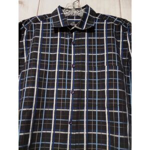 Bugatchi Shirt Men's Medium Black Blue Button Front