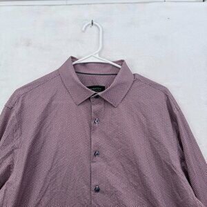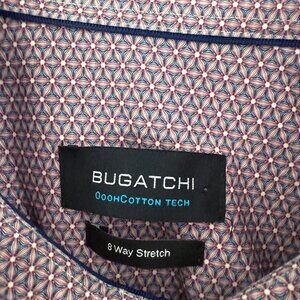 Bugatchi Shirt Mens XL Red Geometric Oohcotton Tech 8 Way Stretch Button Up