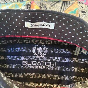 Bugatchi Size Small Black Gray Print Button Up Shirt Pristine Cond . Striped