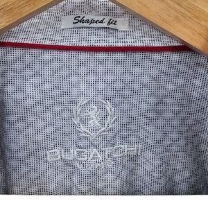Bugatchi Stretch Fit Mens Navy White Plaid Button Down Shirt