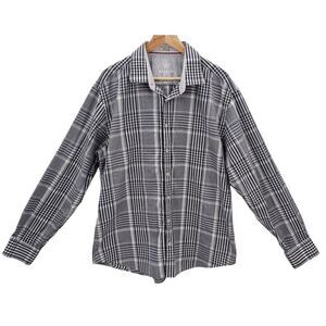 Bugatchi Stretch Fit Mens XXL Navy White Plaid Button Down Shirt