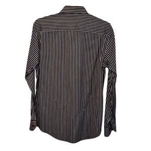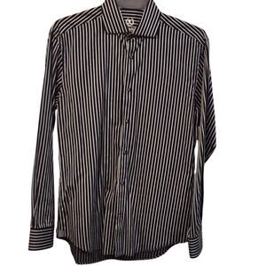 Bugatchi Striped Button Down Shirt, Embroidered logo, flip cuffs sz 15.5 34/35