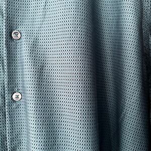 Size XXL from Bugatchi. Style PF2070K64. OoohCotton Tech collection. Teal blue James Geometric print buttondown long sleeve casual dress shirt. Preowned in good condition with no stains or tears.