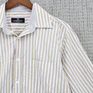 Bugatchi UOMO Shirt Mens Medium M Beige Striped Button Down Long Sleeve Collared