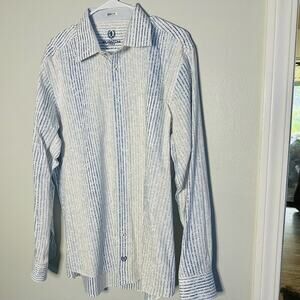 Bugatchi Uomo Blue White Floral Deisgn Classic Fit Collared Button Down Shirt XL