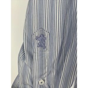 Bugatchi Uomo Button Down Shirt Mens 15 1/2 Med Blue Striped Casual Designer