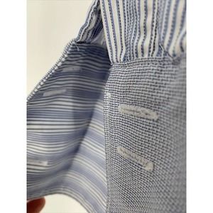 Bugatchi Uomo Button Down Shirt Mens 15 1/2 Blue Striped Casual Designer.