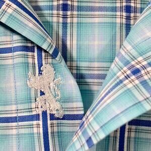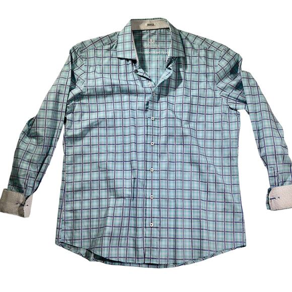 Bugatchi Uomo Button Shirt Men XXL ** Shaped Fit ** Flex Cuffs Blue White Check