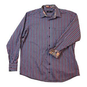 Bugatchi Uomo Button Up Striped Shirt Regular Fit Mens Size XL 100% Cotton