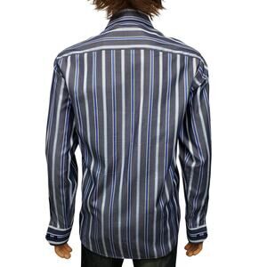 Bugatchi Uomo Dress Shirt Blue Striped Contrast Flip Cuff Long Sleeve