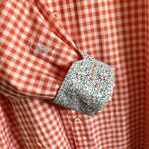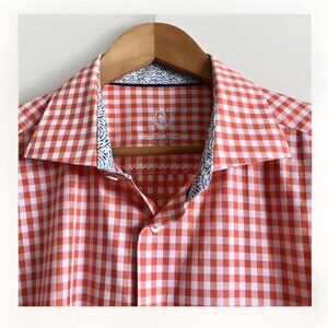 Bugatchi Uomo Dress Shirt Mens Orange Gingham Flip Cuff Button Up XL 17.5 36/37