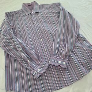 Bugatchi Uomo Dress Shirt Purple Pink Stripe Mens Large Lavender Contrast Cuff
