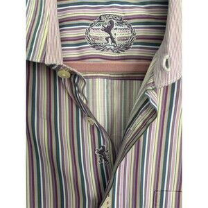 Bugatchi Uomo Flip Cuff Dress Shirt Striped Long Sleeve Button Up Mens Size XL