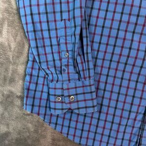 Bugatchi Uomo LS Button Down Shirt Mens L Blue Check Classic Fit Pop Cuff
