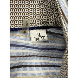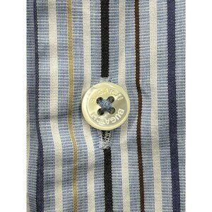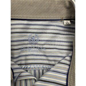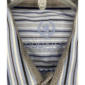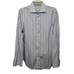 Bugatchi Uomo Men's 16 34/35 Blue White Stripe Long Sleeve Button Down Shirt