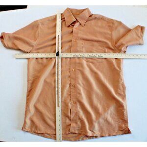 Introducing a stylish and versatile Bugatchi Uomo men's button-up shirt in size L. This shirt features a collared neckline with a point collar style, short sleeves, and a chest size of 46 inches. The shirt is made of polyester and polyester blend fabric with a rayon texture, and it comes in a colorful and classic striped pattern. This shirt is suitable for various occasions such as travel, party/cocktail, casual, and business. It also has pockets for convenience, and the closure is a button-up style. The shirt is machine washable and was made in Korea, Republic of. Get ready to add this high-quality shirt to your wardrobe!