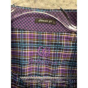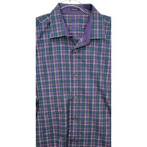 Bugatchi Uomo Mens Classic Fit Purple Plaid Long Sleeve Button-Up Shirt XL